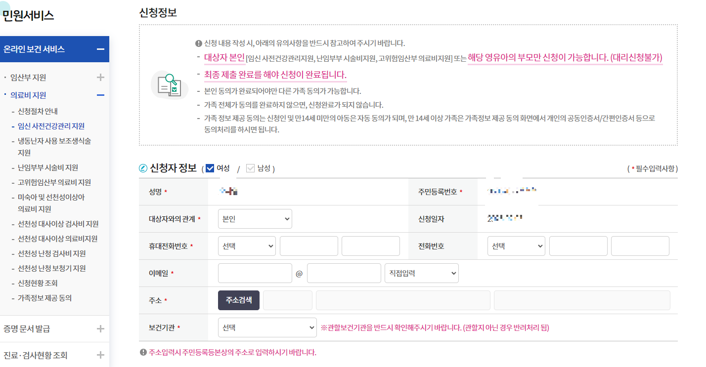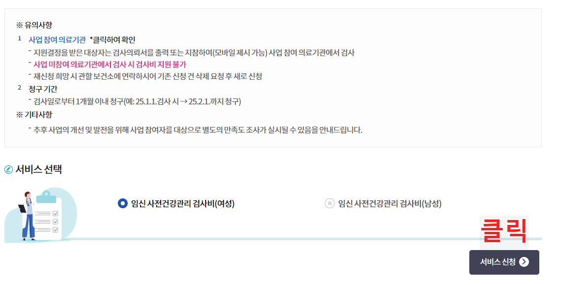 3. 임신 사전건강관리 지원사업 신청 페이지 접속