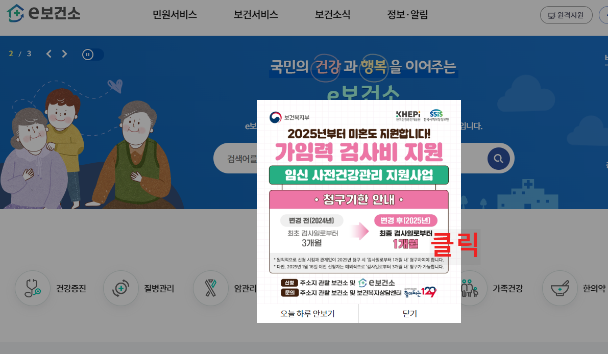 2. 홈페이지 하단에 의료비지원 - 임신 사전건강관리 지원 접속