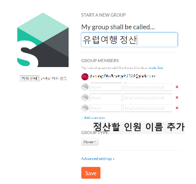 2)그룹명을 정하고 정산할 인원만큼 이름을 추가한다 (이메일 필요없음)